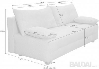 Atlenkiama sofa-lova su patalynės dėže, spyruoklinis blokas, plati gulima vieta,didėlė patalynės dėžė, dengta geros kokybės audiniu.